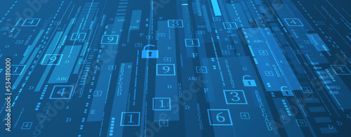 © kras99, Obraz premium internet digital security technology concept for business background. Lock on circuit board
