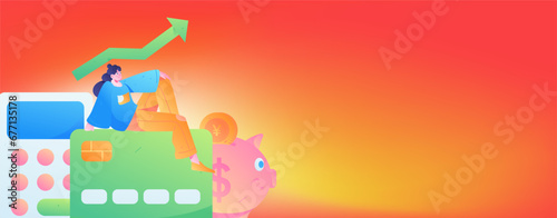 © Lyn Lee, Naklejka premium Internet financial management investment flat vector concept operation hand drawn illustration