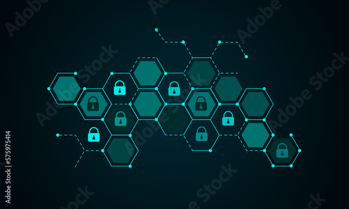 Fototapeta premium Internet network cyber security. Encrypts passwords and personal data. Blockchain technology. Vector illustration.