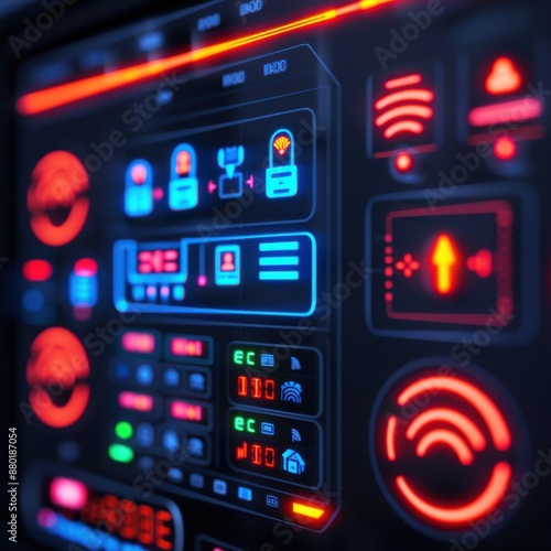 Obraz premium Internet of Things, smart home devices, holographic control panel, secure...