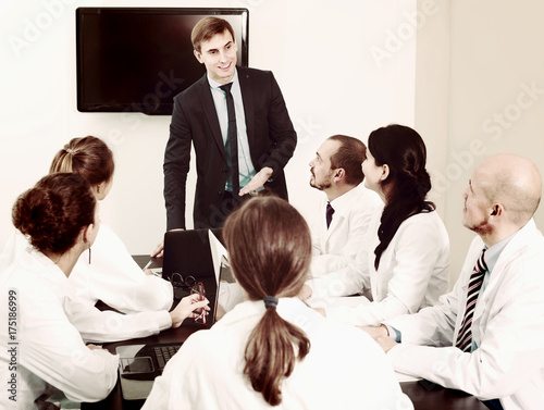 Fototapeta premium interns and professor at meeting