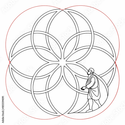 Fototapeta premium Intersecting arches forming abstract spiritual shape with figure