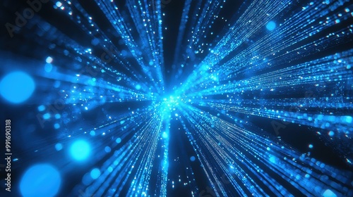 Naklejka premium Intersecting blue light beams on a holographic backdrop, representing the...
