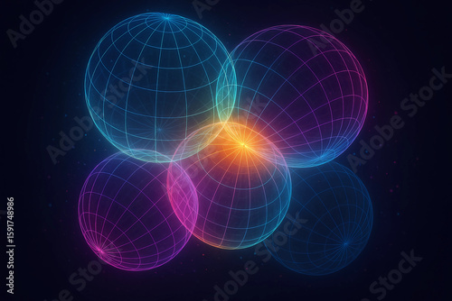 © Nibir, Fototapeta premium Intersecting Neon Spheres with Geometric Glow on Dark Background