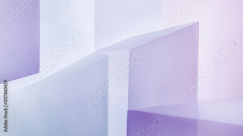Obraz premium Intersecting shapes in frosty lavender and crisp white, inspired by frost patterns on windows. Soft gradient background, minimalist composition
