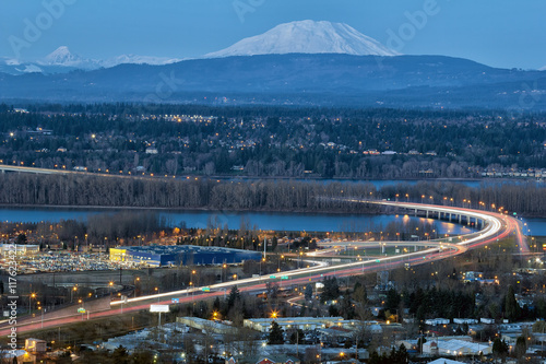 Fototapeta premium Interstate 205 Freeway over Columbia River Blue Hour