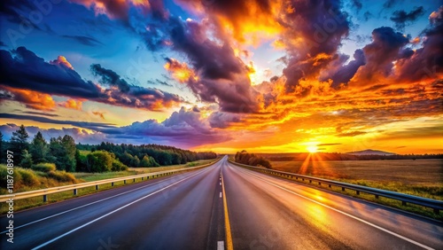 © sanom, Naklejka premium Interstate Highway Road Trip - AI Photography, Scenic Highway, Open Road