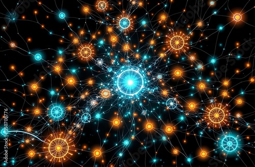 © Taria Technology, Obraz premium Interstellar Connection: Blue Giant with Orange Companions Amidst Stars