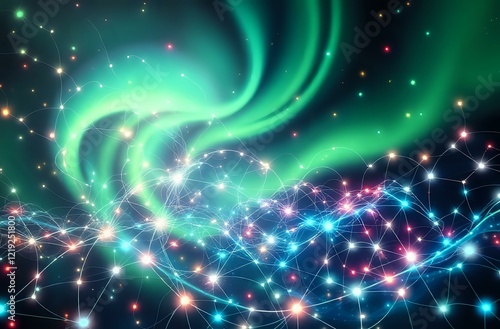 Fototapeta premium Interstellar Harmony: Connected Cosmos in Aurora Borealis Style