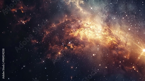 Fototapeta premium Interstellar space with colorful cosmic dust clouds, deep red and orange hues...