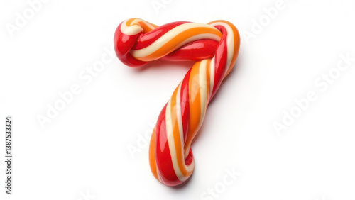 © Kateryna, Fototapeta premium Intertwined candies letter "7", realist precision, high saturation, beautiful, inspiring, isolated, flat white background