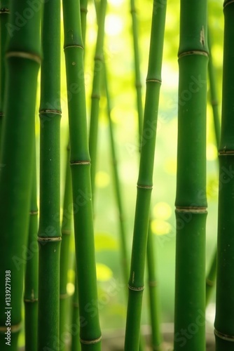 Fototapeta premium Interwoven bamboo, light filtering through, shadows, tropical, craft, green