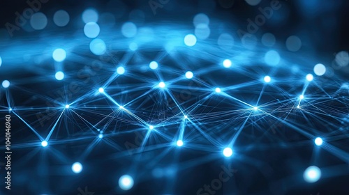 © SETSU ST, Obraz premium Interwoven light beams and data points on a high-tech digital network background