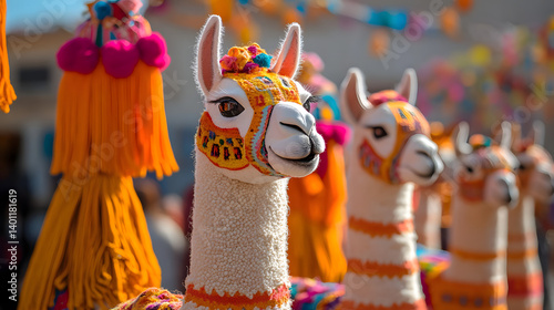 Fototapeta premium Inti raymi festival colorful llama decorations, cusco peru
