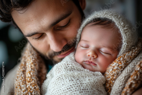 Obraz premium Intimate Moment A Proud Father Cradles His Newborn Capturing the Essence of...