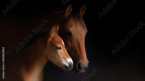© Irina Ukrainets, Fototapeta premium Intimate moment between two horses in soft focus. The warm colors lend a gentle atmosphere. Perfect for equine art lovers, this image captures connection. Emotional, serene, and beautiful. AI