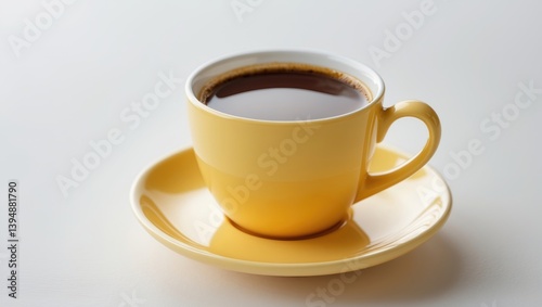 © Seyyar, Obraz premium Intimate perspective of a coffee cup and saucer placed on a white background