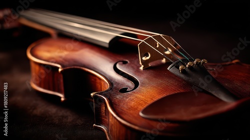 Fototapeta premium Intimate violin close-up highlighting strings and f-holes with dramatic...