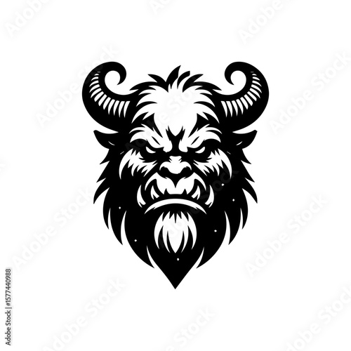 © animardiani, Fototapeta premium Intimidating Beast Face with Horns Sharp Teeth and Fierce Expression.