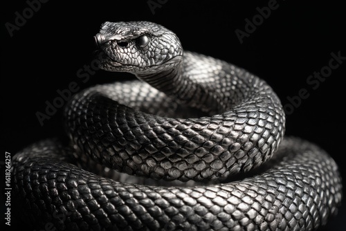 © Saroar, Fototapeta premium Intimidating rattlesnake coiled ready to strike in dramatic lighting