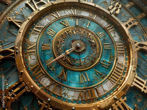 © Noppakun, Fototapeta premium Intricate Antique Clock Face with Roman Numerals