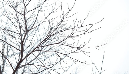 Obraz premium Intricate bare branches, stark white backdrop, winter feel, backdrop, art