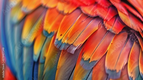 © PalaG, Obraz premium Intricate Beauty of a Bird's Feather: Macro Close-up Detailed Pattern of Nature's Artistry