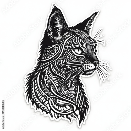 Obraz premium Intricate black and white illustration of a cat with abstract patterns