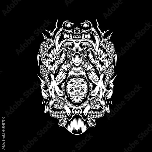 Obraz premium Intricate black and white illustration of a mythical creature surrounded by...