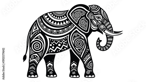 © MD Riad Hossain , Naklejka premium Intricate black and white illustration of an elephant with detailed patterns Vector