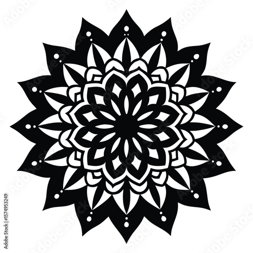Obraz premium Intricate Black and White Mandala Design Circular Symmetry and Floral Patterns