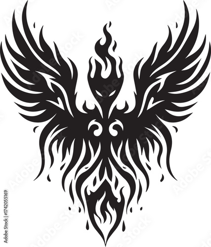 Obraz premium Intricate Black and White Phoenix Bird Design with Flames and Abstract Wings