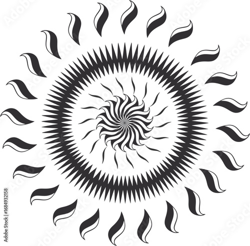 © Pipasha, Obraz premium Intricate Black and White Radial Sunburst Mandala Design geometric