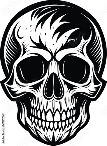 © Pixel Art, Fototapeta premium Intricate Black and White Skull Illustration