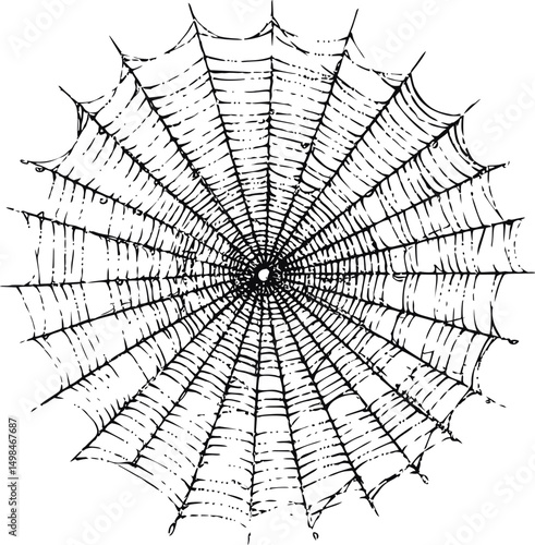 Obraz premium Intricate black and white spider web with radial symmetry illustration....