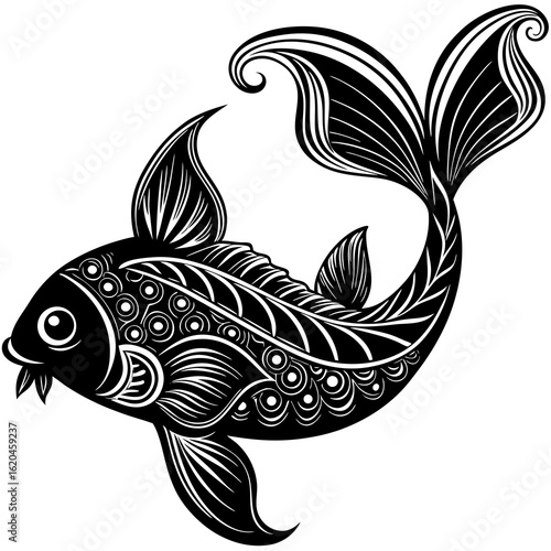 Fototapeta premium Intricate black and white stylized rabbit illustration with detailed floral patterns and lush foliage accents