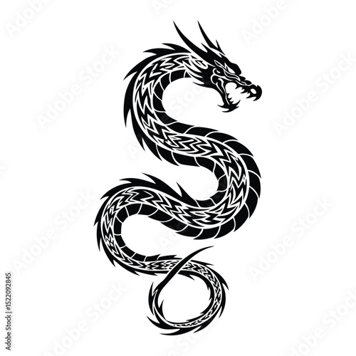 © GR Graphics, Obraz premium Intricate black dragon vector illustration symbolizing power strength and mythology on white background