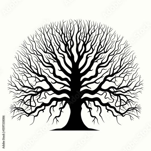© Vector Stock, Naklejka premium Intricate black silhouette of a large bare tree isolated on white background silhouette