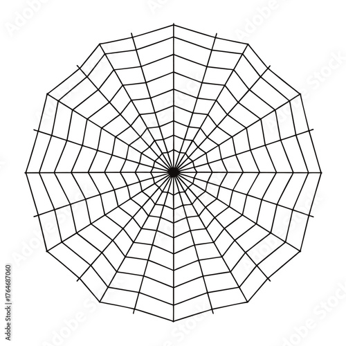 Obraz premium Intricate Black Spiderweb Pattern with Radial and Spiral Threads.