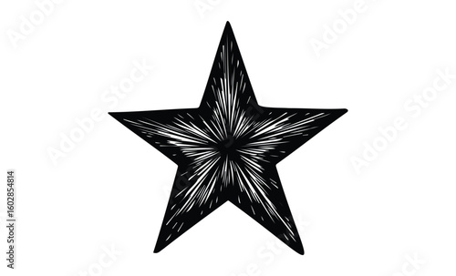 © Vlad, Obraz premium Intricate black star illustration with radiating lines on white background. Vector retro hand drawn illustration.