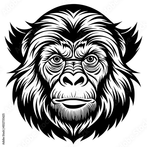 Fototapeta premium Intricate Black Vector Illustration of an Orangutan Head
