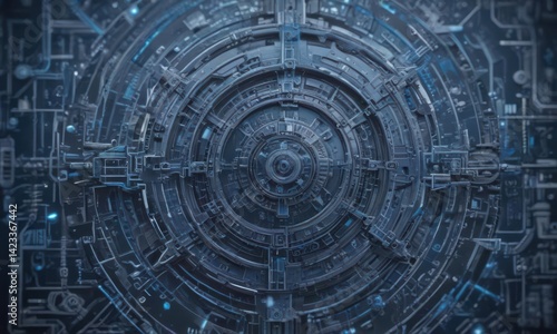 Fototapeta premium Intricate blue engineering schematic, abstract geometric backdrop,...