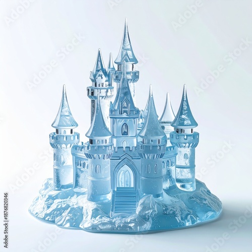 Obraz premium Intricate Blue Ice Castle Sculpture on a White Surface Detailed Craftsmanship