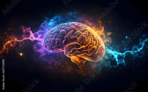 Fototapeta premium Intricate brain connections, vibrant colors, dynamic pathways