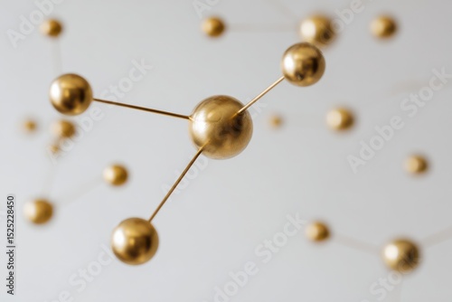 © Maksym, Obraz premium Intricate brass mobile sculpture suspended against a soft white wall captures minimalist elegance and artistic expression