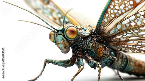 Fototapeta premium Intricate bug close-up on white background macro photography natural...