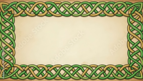 © Khozainuz, Obraz premium Intricate Celtic Knotwork Frame on Aged Parchment Background.