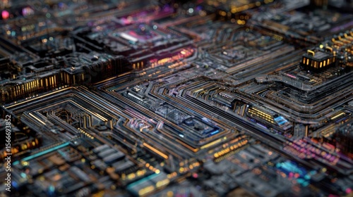 © paryati, Obraz premium Intricate circuit board glowing pathways abstract technology background