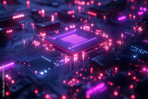 © Shades3d, Fototapeta premium Intricate Circuit Board with Glowing Processor