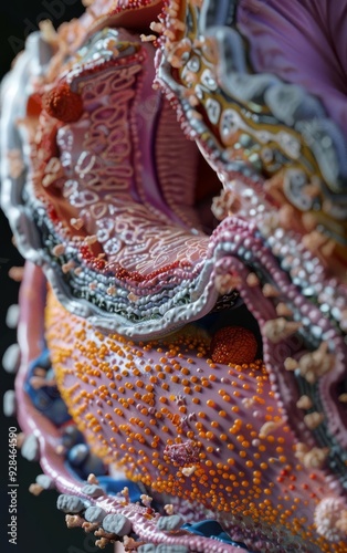 © GraphzTain, Obraz premium Intricate close-up of colorful textures showcasing organic forms and patterns, perfect for artistic and scientific themes.